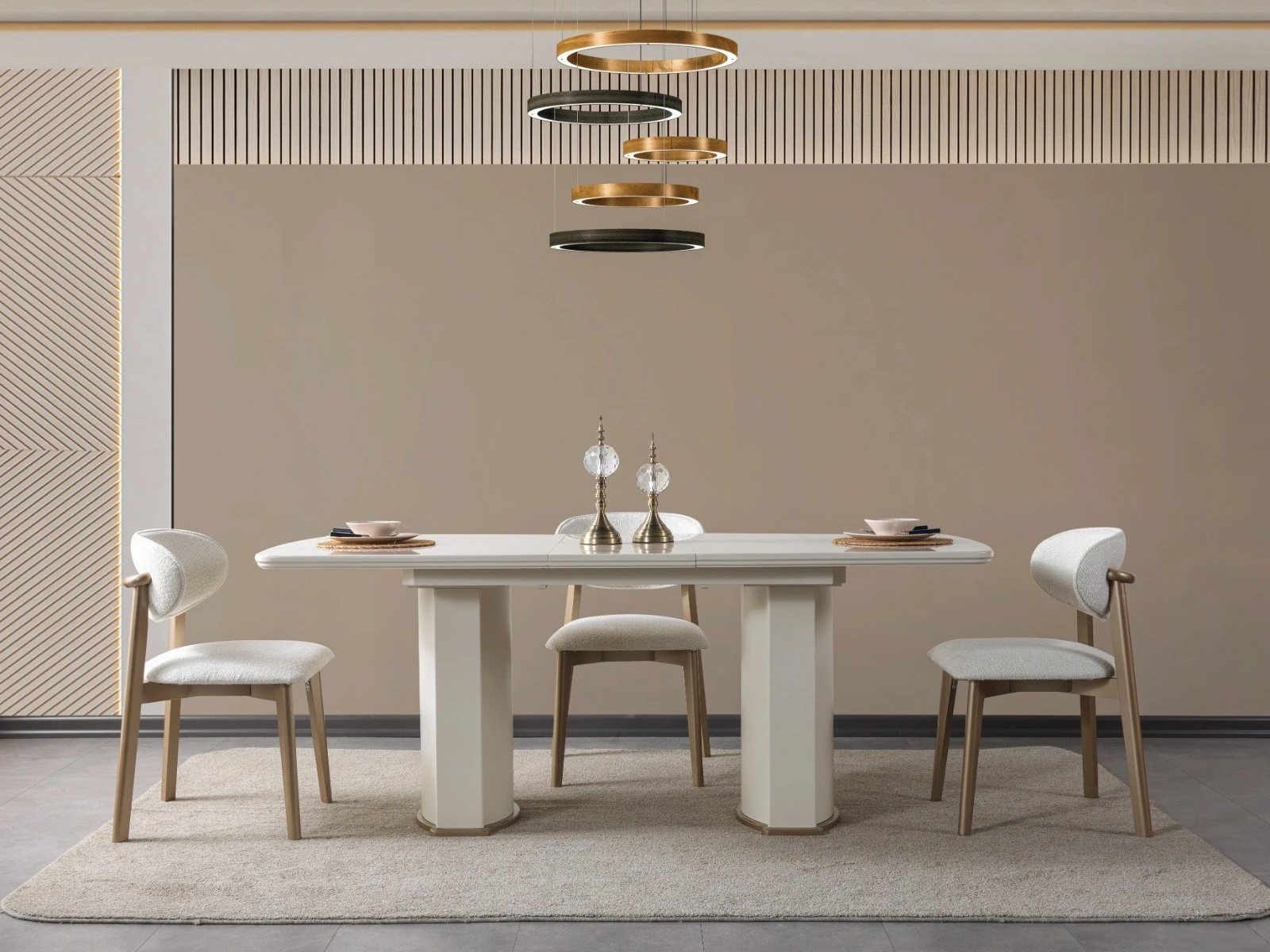Sera Yemek Odası Takımı, evinizin atmosferini modern bir şıklıkla tamamlayarak yaşam alanınıza zarafet katar.
